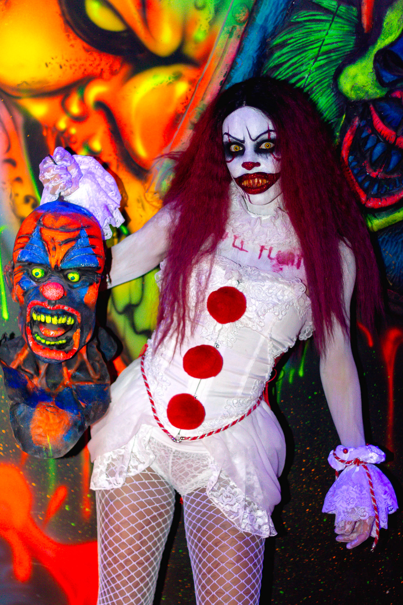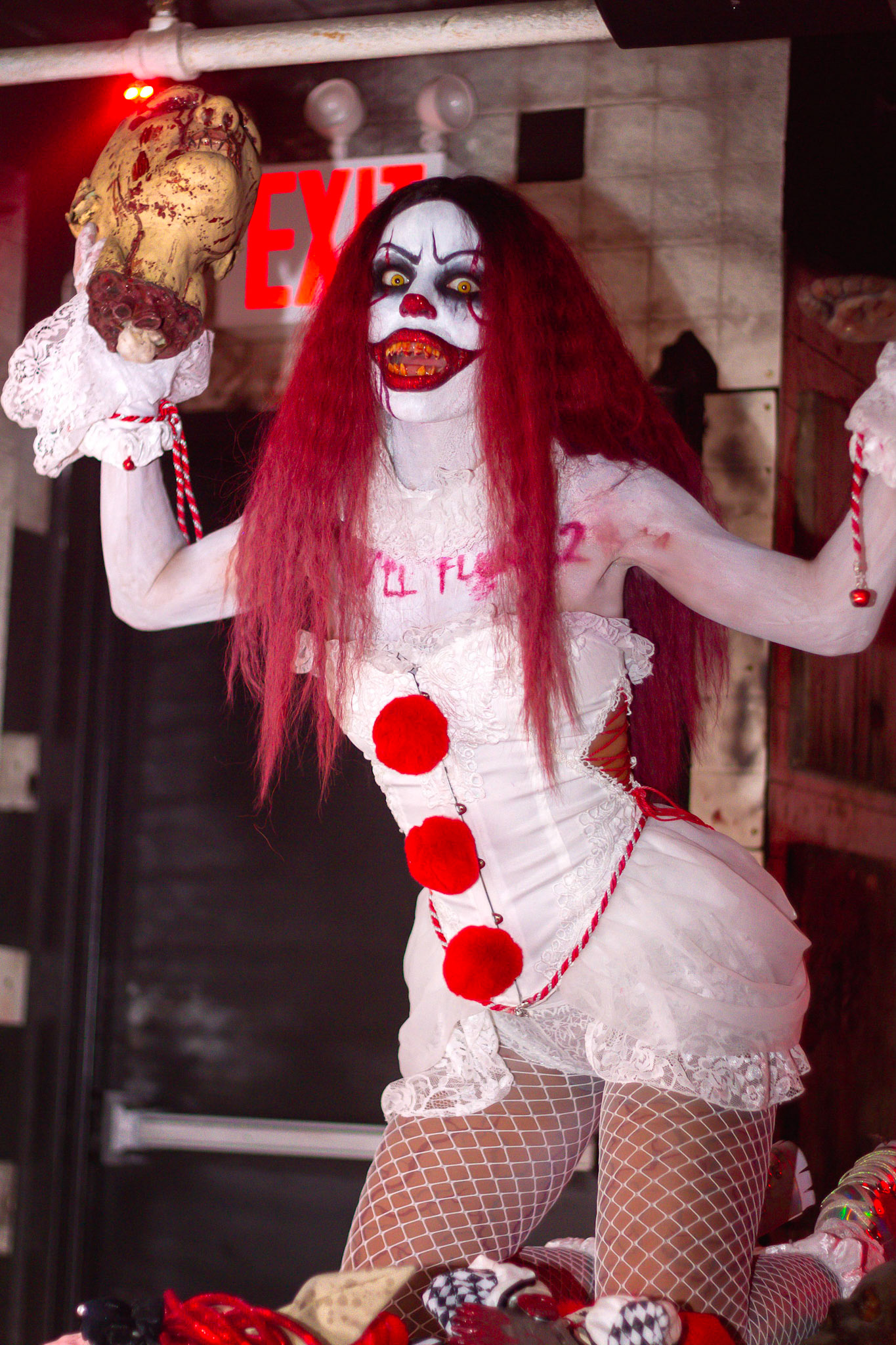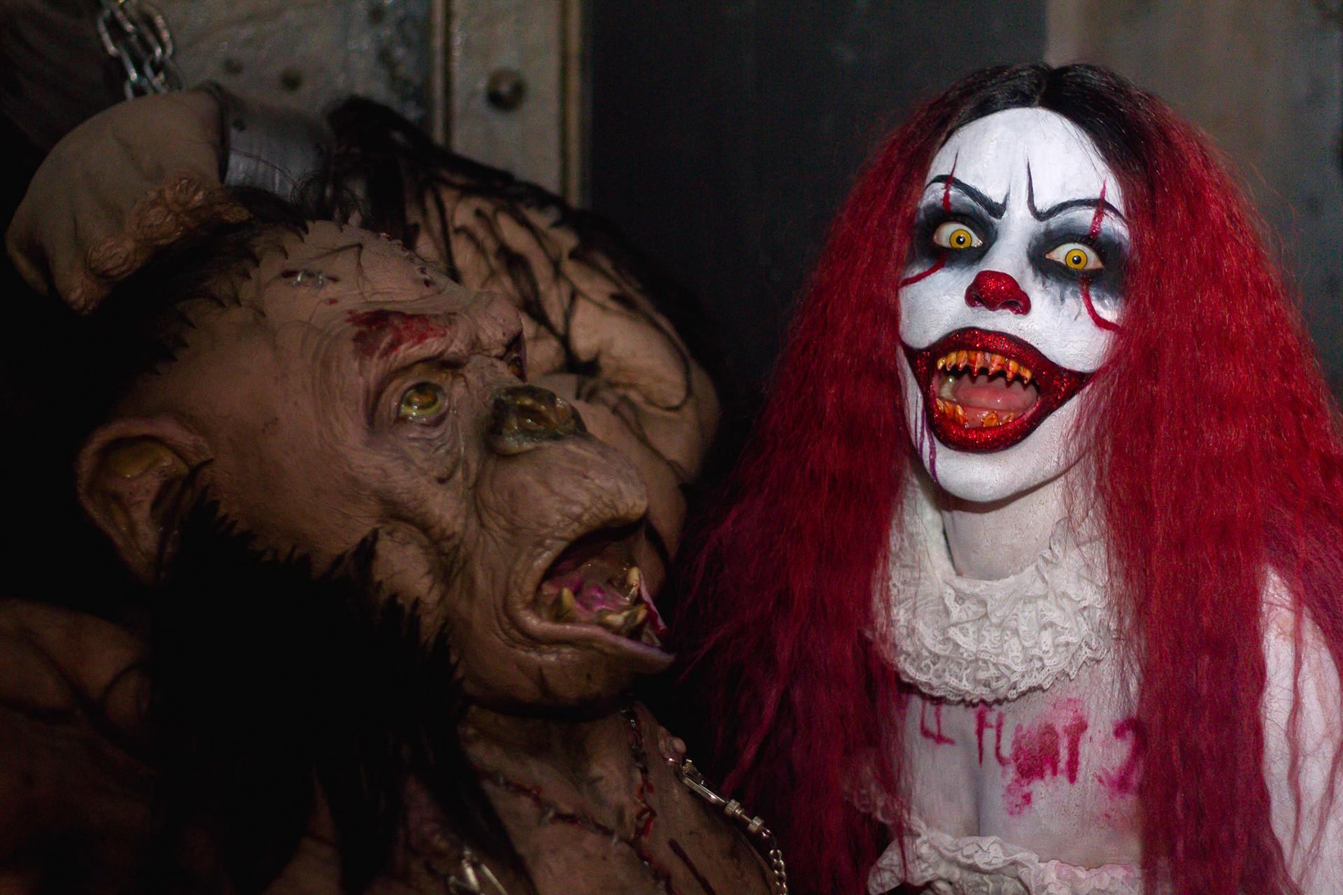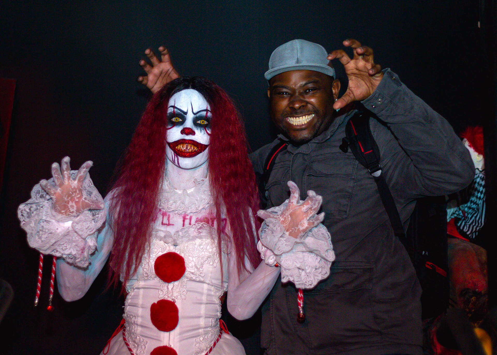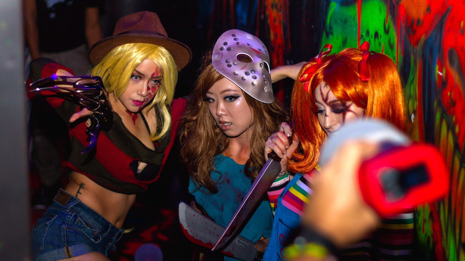 Fashion Model Barbie Chula as well as a few other cosplayers pose at New York's Premier Haunted Attraction for Halloween 2018
