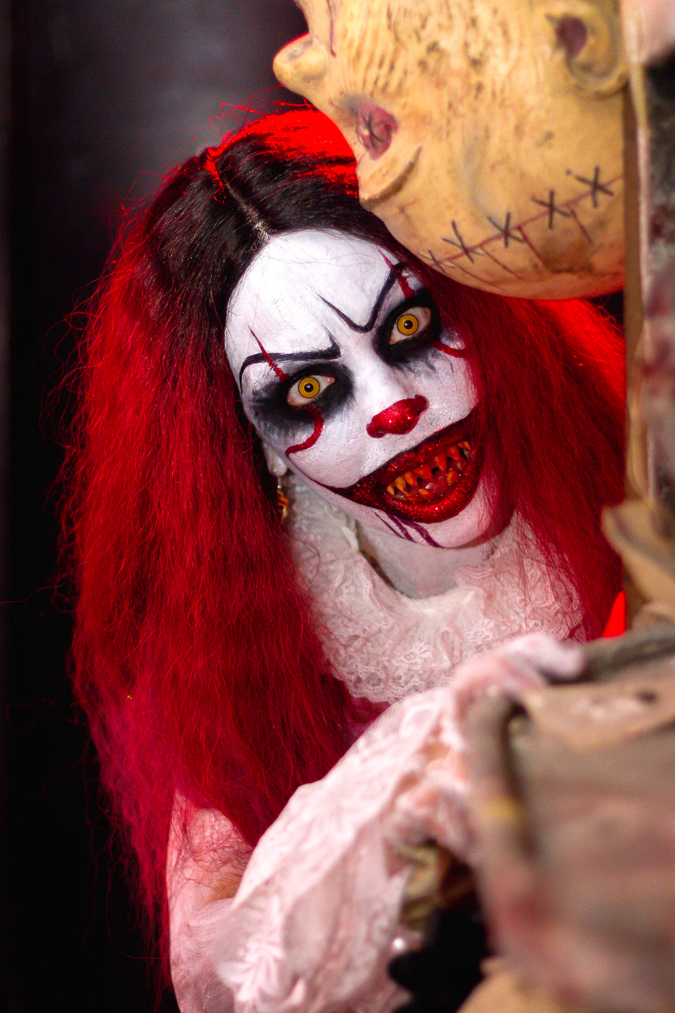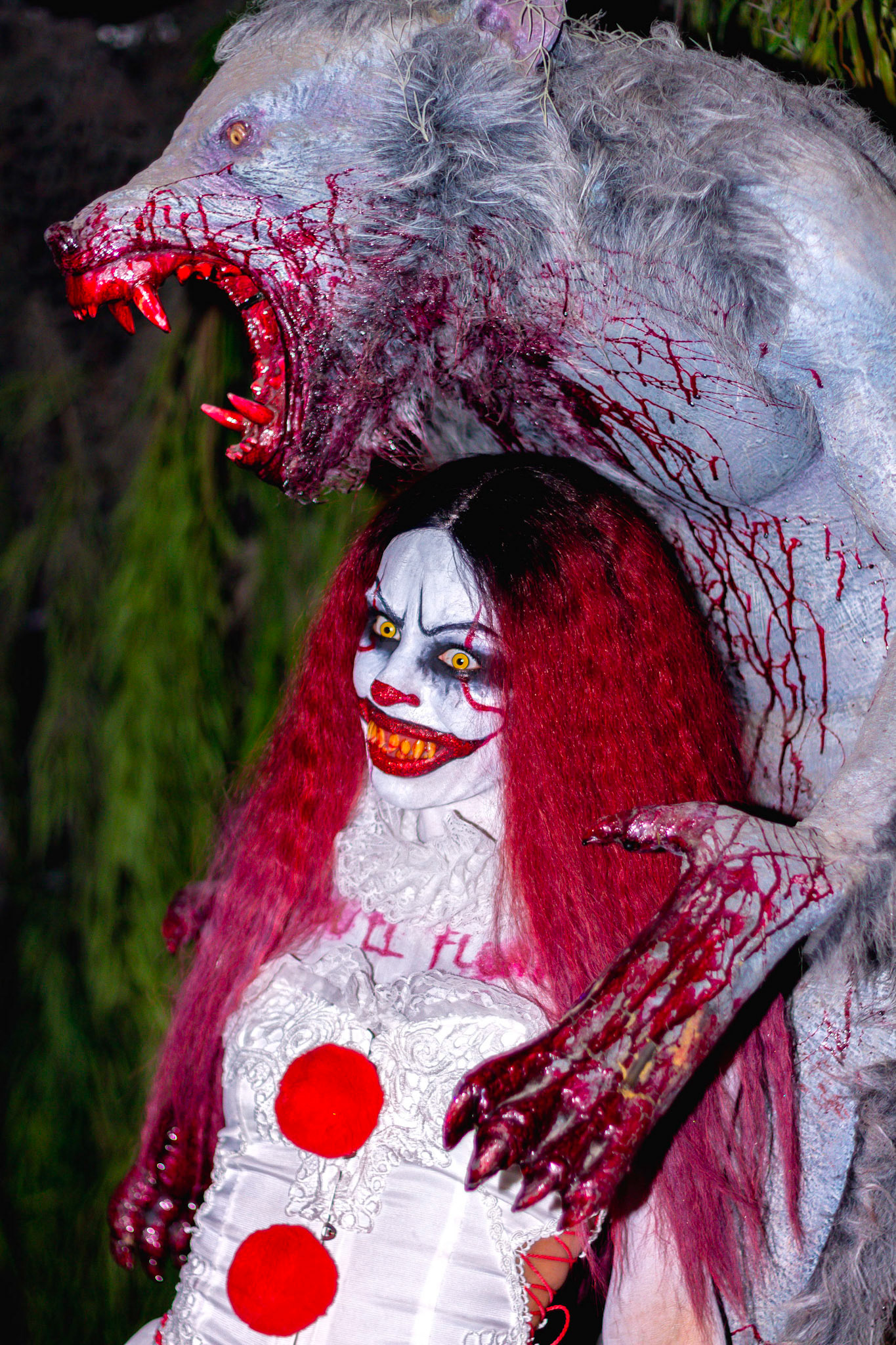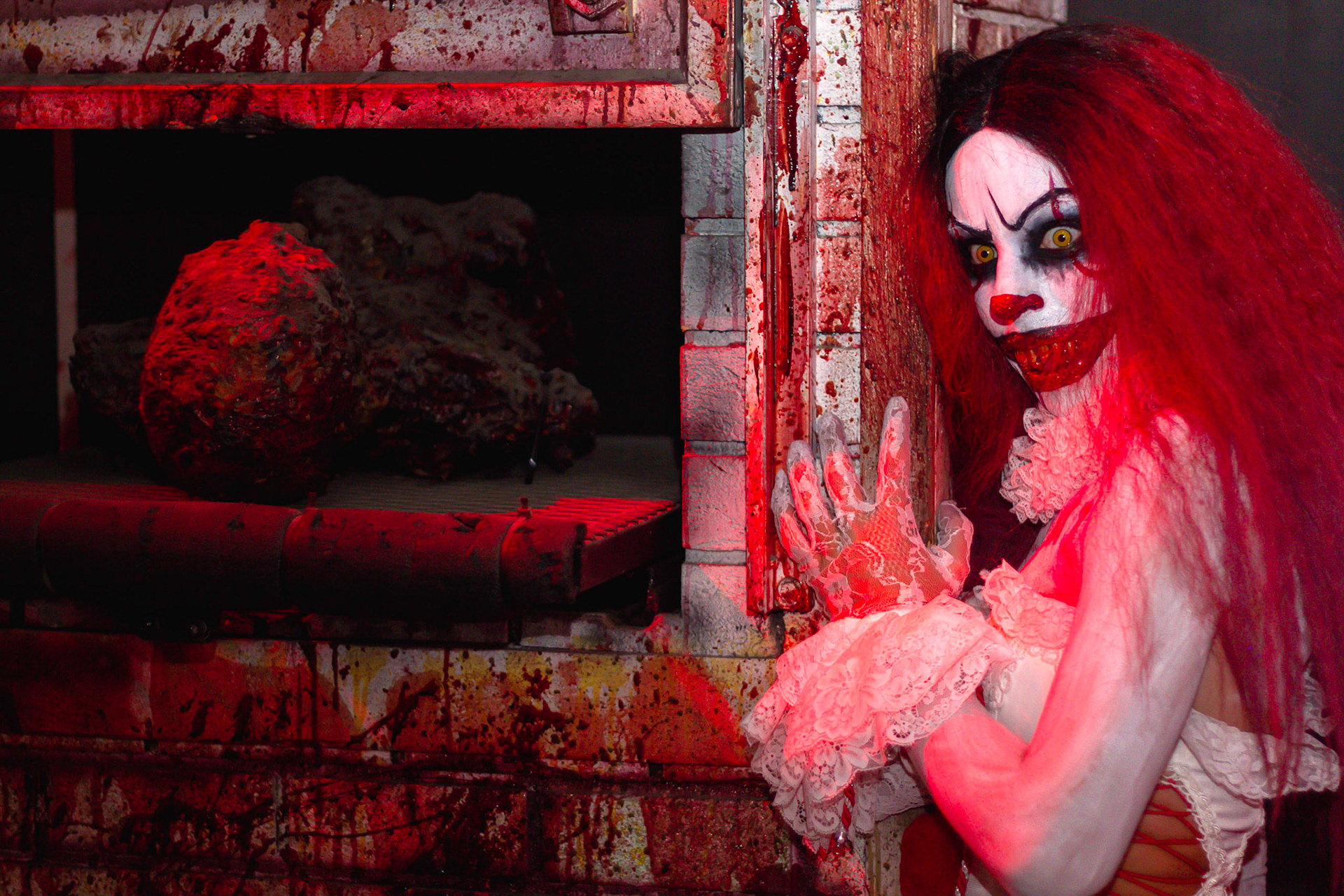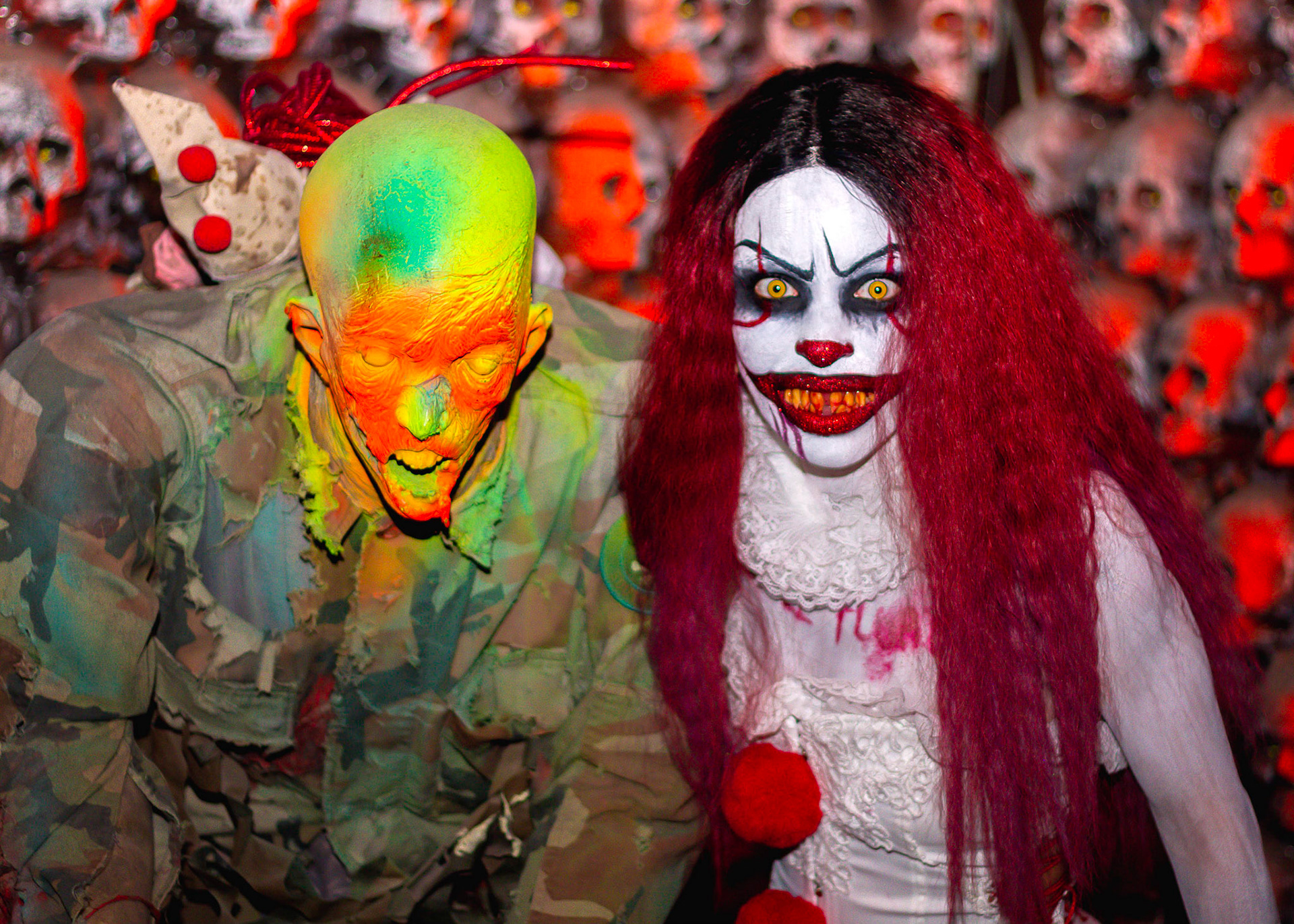 Fashion Model Barbie Chula as well as a few other cosplayers pose at New York's Premier Haunted Attraction for Halloween 2018