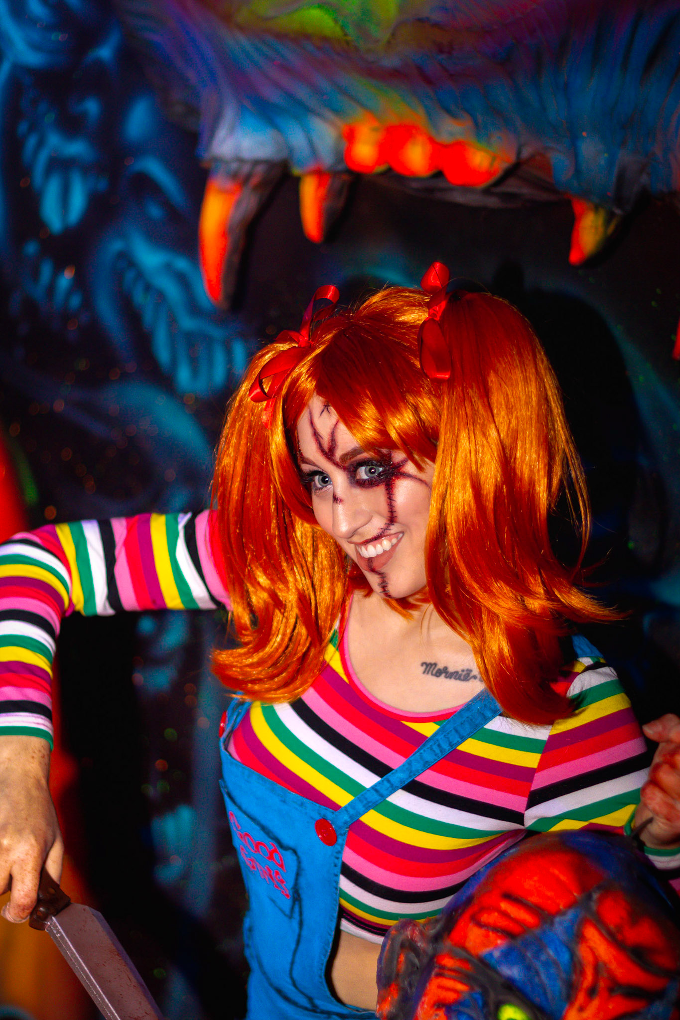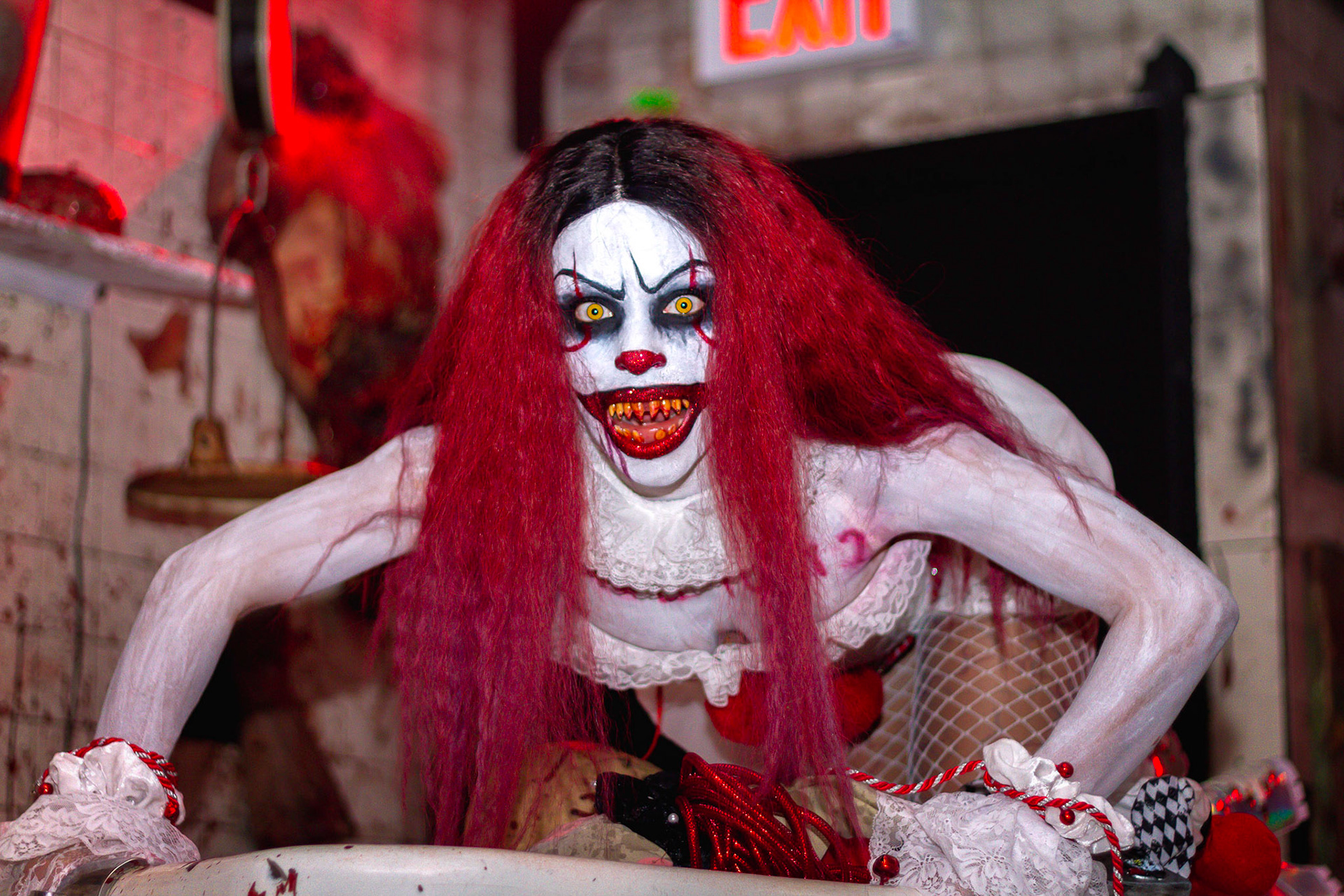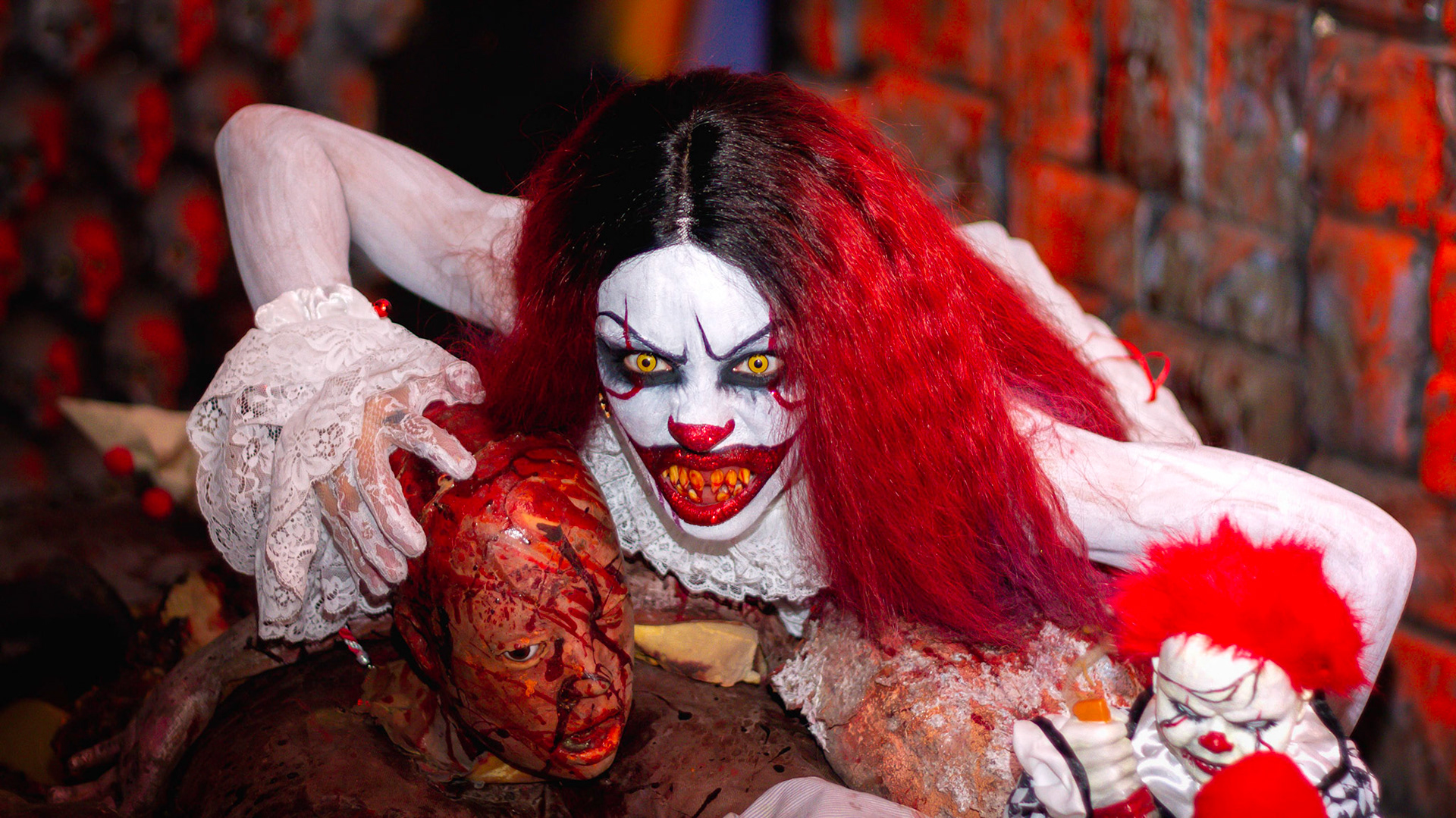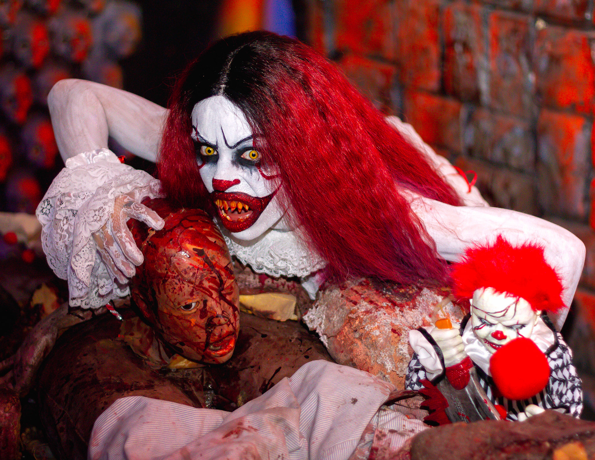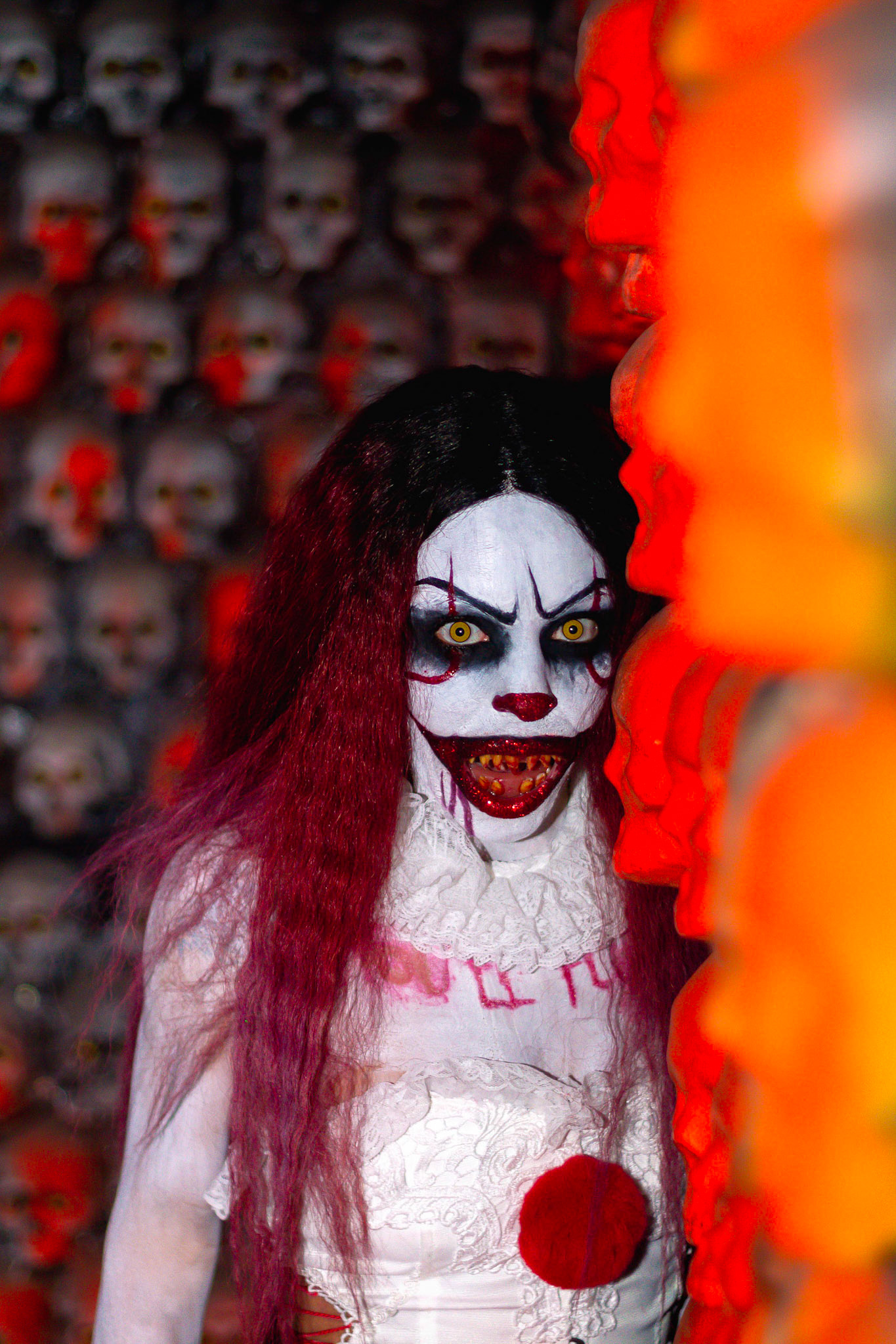 Fashion Model Barbie Chula as well as a few other cosplayers pose at New York's Premier Haunted Attraction for Halloween 2018